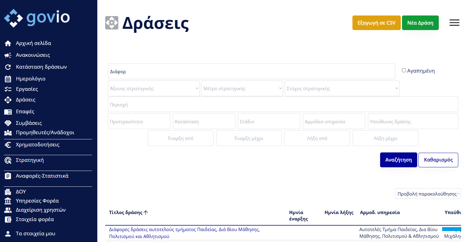 Ορισμένες βασικές χρήσεις του govio μέσα σε ένα δημόσιο φορέα: